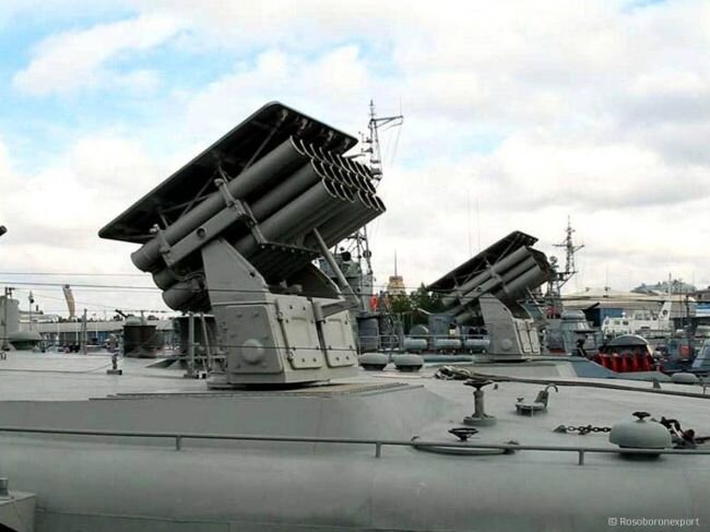 - А-22 - 140-мм реактивная система залпового огня - огнеметно-зажигательный комплекс. Система создана и производится ГНПП «Сплав» (г.Тула) и предназначена для вооружения речных и десантных кораблей, а так же судов на воздушной подушке. Дальномерно-визирное устройство ДВУ-3-БС, размещенное на боевом модуле, предназначено для дистанционного управления стрельбой комплекса по береговым и надводным целям, а также для поиска и обнаружения целей в светлое и темное время суток при условии их метеорологической видимости. ДВУ-3-БС обеспечивает выработку полных углов горизонтального и вертикального наведения и автоматическую передачу их на пусковую установку,- рассказал канал.