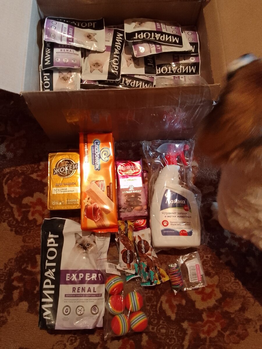 Марина уже стала для девушки очень близким человеком, они хорошо общаются и она прислала нам уже много-много посылочек со всякими нужностями, кормами, вкусняшкам и подарочкам лично для волонтера🤗
