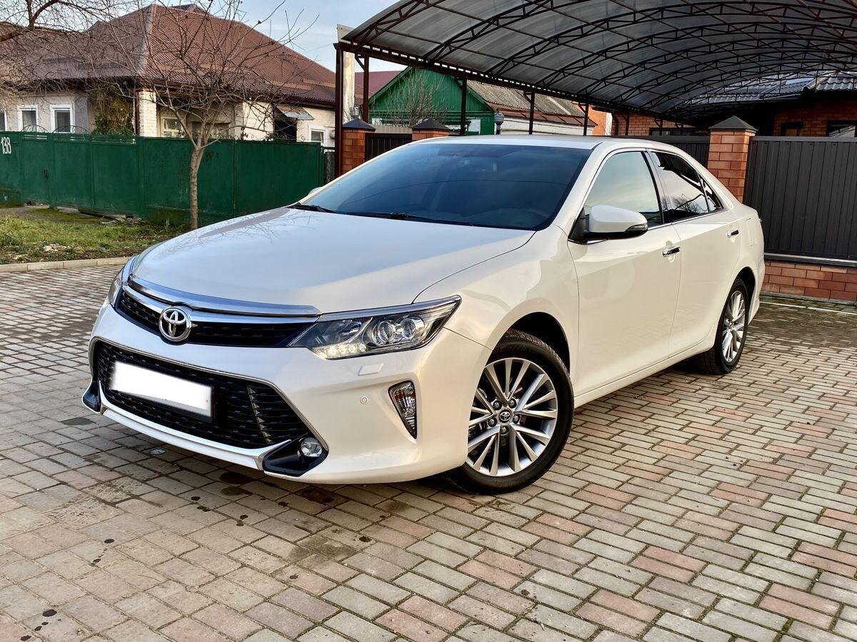 2017год, КПП Автомат Владею автомобилем Toyota Camry 2017 года выпуска, автомобиль мне и моей семье очень нравится, просторный, комфортный, очень вместительный салон и багажник просто огромный. Очень нравится дизайн этого автомобиля, комплектация R4, головная оптика линзованная диодная, свет просто "стелит", яркий и без провалов. Автомобиль мой белого цвета, фирменный Тойотовский цвет "белый жемчуг", на солнце переливается перламутром, точь-в-точь жемчуг. Автомобиль рестайлинговый, самый последний выпуск Camry 55, указатели-повторители поворотов имплантированы прямо в передний бампер, решетка радиатора похожа на "соты", если смотреть на автомобиль в профиль, то мне очень нравятся как выполнены задние фонари, видны "треугольники" задних фар, вдоль всего багажника проходит никелированная полоска, которая имплантирована прямо в задние фонари, очень красиво смотрится, свет габаритов тоже диодный. В автомобиле проделана шумоизоляция в 3 слоя полностью, поэтому при движении тишина, как в Рэн