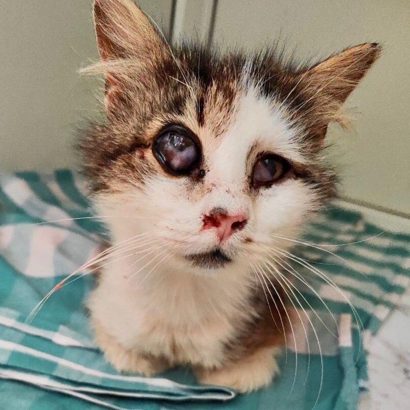 Назвали котика Игнат. Он истощён, проблема с глазом, две глубокие раны на двух лапах. И каждый день звонки, сообщения : заберите, спасите. Гул в ушах, вата в голове, язык от разговоров заплетается. На что их содержать, на что лечить? На что устраивать «райский уголок»?