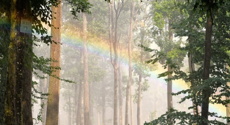 Тёплый дождичек идёт, я сижу, Из-под ёлки на полянку гляжу. Как в тазу, по чистым лужицам Пузыри цветные кружатся. Выползает из земли червячок. Под листочек спрятался паучок. Весь опятами оброс старый пень. Сдвинул шапку боровик набекрень. Вот и радуга-дуга, чудо-радуга! Два лукошка в лес-то взять Мне бы надо бы.