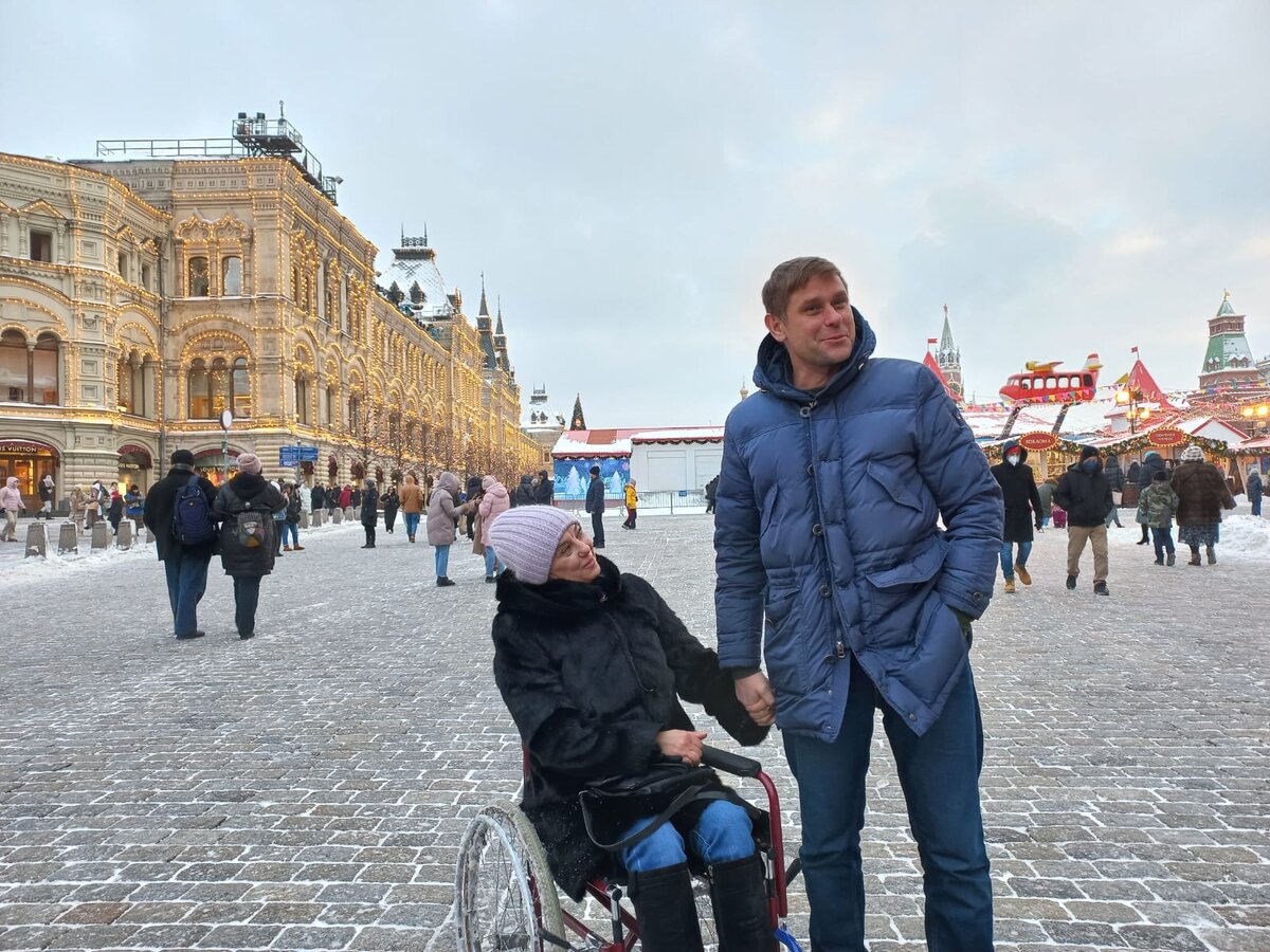 Мы сначала заехали на Воробьевы горы, но погода была снежной и ничего не было видно. И мы поехали на Красную площадь.