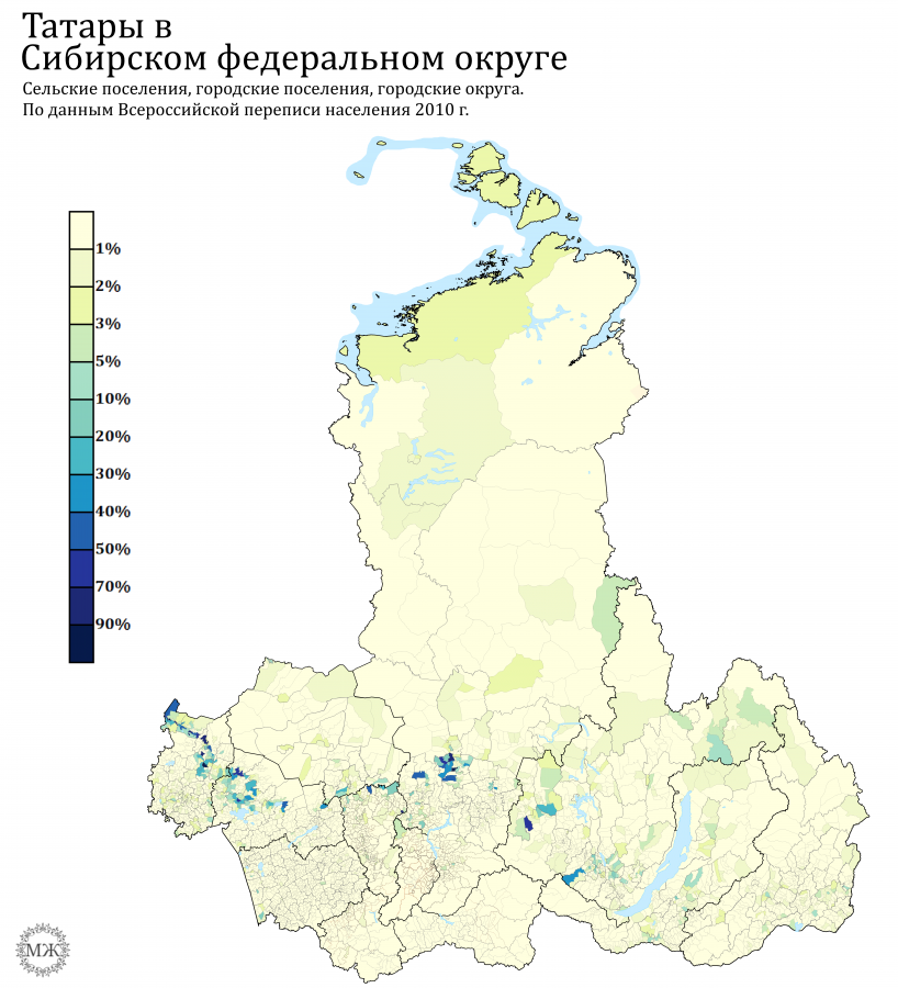 Пойдём с запада на восток. На западе живут сибирские татары, ареал которых разграничен несколькими областями в рамках двух округов. Про их положение в УФО можно почитать здесь, там довольно обобщённая информация, поскольку моё повествование на тот момент оставляло желать лучшего. Поэтому полноценный их разбор будет здесь.