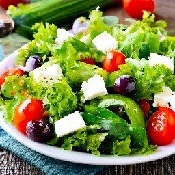 Салат из свежих овощей: Ингредиенты: - 2 свежих огурца - 1 помидор - 50 грамм листового салата - 30-40 грамм сыра - 40 мл оливкового масла - соль, перец по вкусу Приготовление: 1. Огурцы и помидоры нарезать тонкими кружочками, сыр натереть на крупной терке. 2. Салат порвать руками. 3. Все ингредиенты смешать и заправить оливковым маслом. Посолить, поперчить по вкусу.