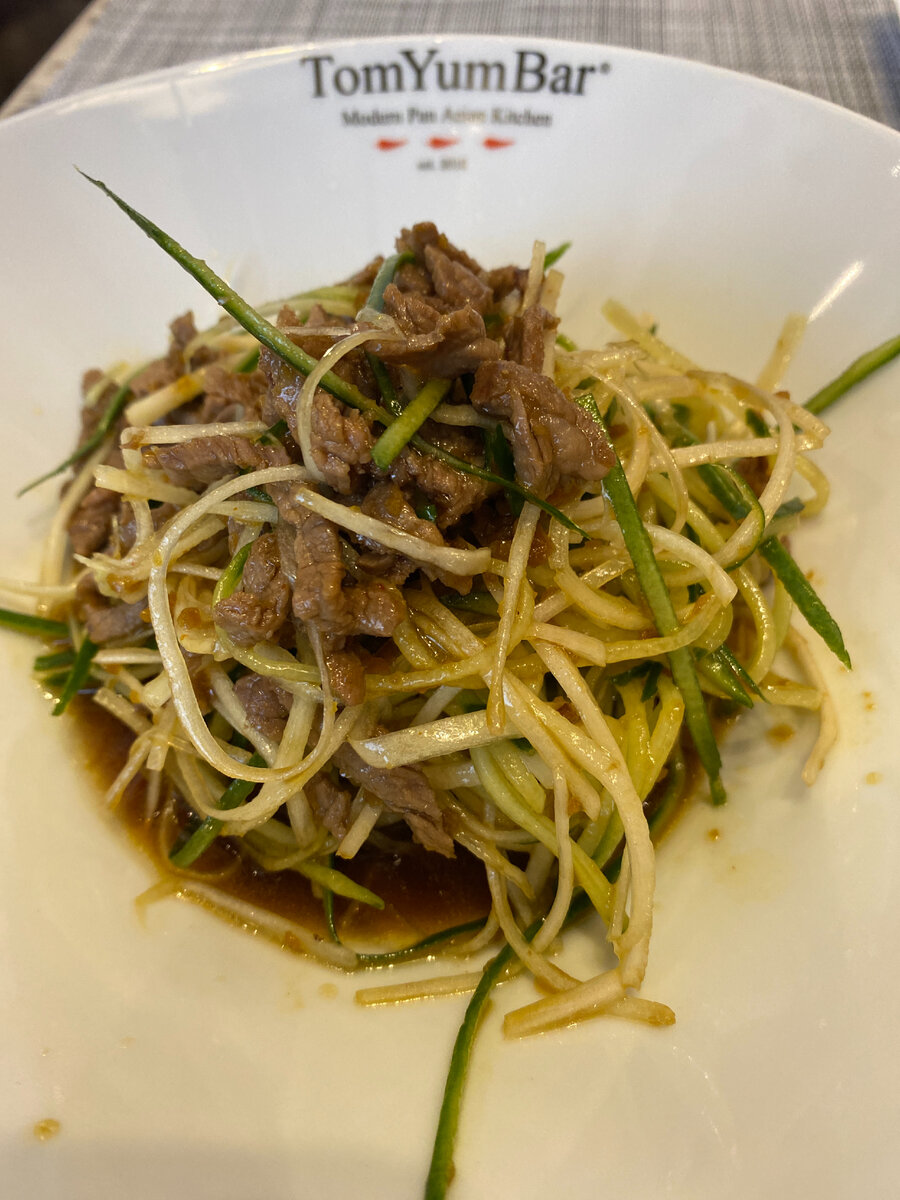 Сходили семьей в этот замечательный ресторан, остались под впечатлением от еды и самого ресторана. Заказали себе 4 позиции и еще из детского меню для детей. Дети были довольны и уплели все до остатку! Я себе заказал Тайский салат с говяжьей вырезкой. Он очень сочный и совсем чуть чуть островат. Говядина немного жестковата, но салат в целом вкусный - рекомендую! Жена взяла на пробу Поке с лососем и соусом никкей. От лосося я ожидал, каких-то прям божественных эмоций и вкусов, но как то не зашел, может потому что он был теплый?! Авокадо и ананас очень хорошо сочетаются. Рис показался жене очень острым, мне зашел на ура! В-общем он на любителя, но раз попробовать стоило, больше заказывать точно не будем). Далее у меня был Том Ям с Королевскими креветками, я пробовал этот суп первый раз и скажу вот это, то что стоит попробовать, тут буря эмоций. Степень остроты всегда спрашивают, я заказал 3. Обалденный супер вкус, острый как я люблю. Кинза так идеально подходит сюда, АУФ!!! Не знаю надо