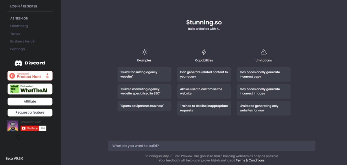 Новый и достаточно интересный искусственный интеллект, выполненный в знакомом стиле ChatGPT, позволяющий по вашему текстовому запросу сделать сайт. Очень удобен в использовании, вам не понадобятся глубокие познания в программировании для достижения результата. Ссылка на сервис: https://stunning.so/?