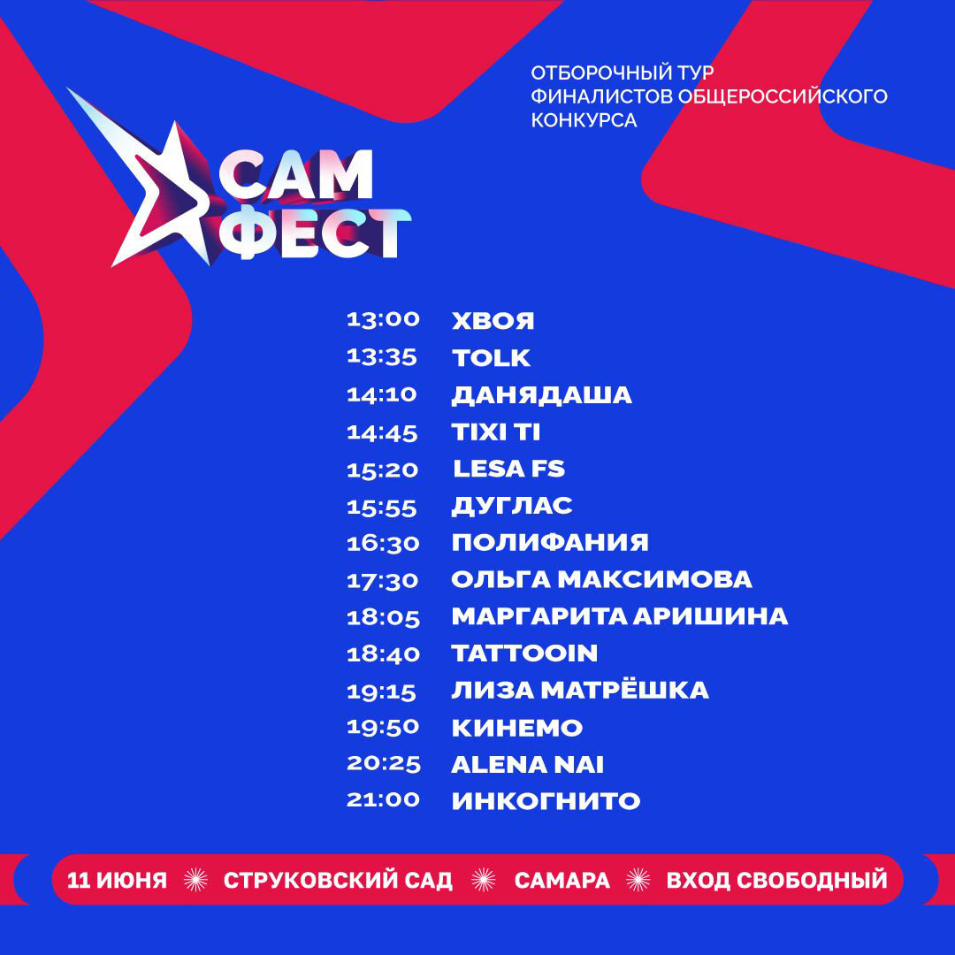 11-12 июня 2023 года в Самаре прошёл второй фестиваль авторской песни Самфест. Фестиваль приурочен к Дню России. Впервые прошёл в 2022 году. Его особенность в том, что к участию приглашают исполнителей, которые сами пишут свой материал. Жанр при этом не имеет значения, что и отличает его от другого самарского музыкального фестиваля - бардовского Грушинского. Предлагаю небольшой обзор первого фестивального дня.
