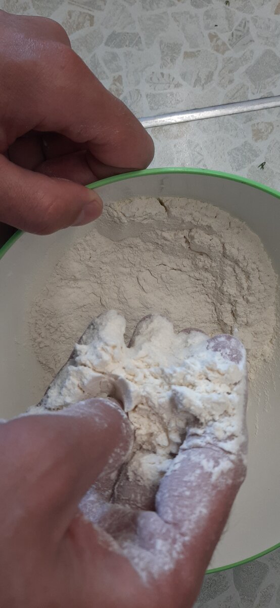 Время приготовления: примерно около - 30 минут; Энергетическая ценность: (Всего блюда - 1021 ккал.; в 100 граммах - 292 ккал). Сорт муки, выбирайте который вам нравиться. Небольшое отклонение в количестве муки нет ничего страшного. Главное это веселье и вкус! Начинаем замес теста. Возьмем подходящую для этого дела посуду и просеиваем в нее муку. После чего, добавляем немного соли для быстрого растворения и хорошего настроения. Теперь смешиваем все ингредиенты, либо руками или ложкой, выбирайте способ, который вам удобен. Затем заливаем в нашу миску теплую воду,