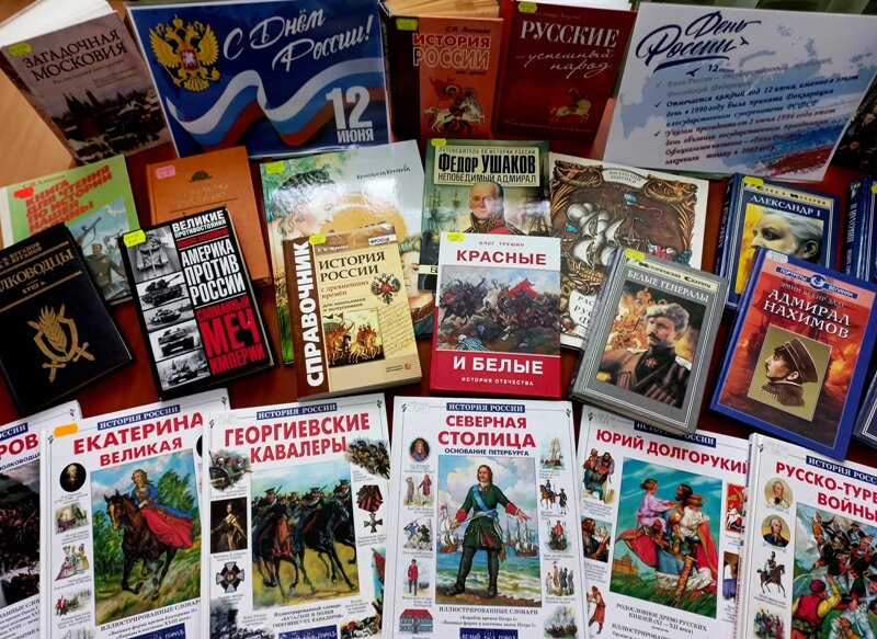 В отделе обслуживания учащихся среднего и старшего возраста Луганской библиотеки для детей ко Дню России оформлена книжная выставка – хроника «История России из века в век». День России — один из главных государственных праздников. Мы отмечаем его 12 июня, потому что именно в этот день, в 1990 году была принята Декларация о государственном суверенитете России, а Конституция была признана главным законом страны. Важность этого праздника состоит в осознании силы и могущества страны, построенного на фундаменте доверия, единства и сотрудничества. Уверенности в том, что наша держава была и остается свободной и сильной страной. В этот день по всей стране проходит большое количество торжественных и праздничных мероприятий, а так же народных гуляний, которые завершаются красочными салютами. По традиции 12 июня в Кремле президент России вручает Государственные премии РФ. На выставке представлена литература из фонда библиотеки: об истории России и русского народа, о героях и антигероях «смутного