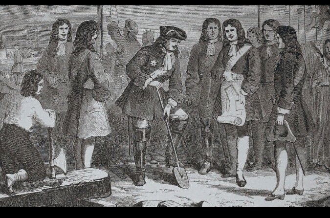 Уникальное историческое свидетельство, дошедшее до нас сквозь века и цензуру - Петр 1 лично откапывает Петербург деревянной лопатой, 1703 год: