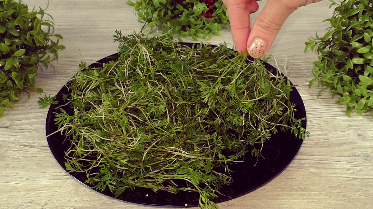 А я покажу, как я использую зелёную часть моркови. После прореживания молоденькие листочки отправляю в воду и хорошо промываю. Далее добавляю ботву туда же, куда добавляю морковь.