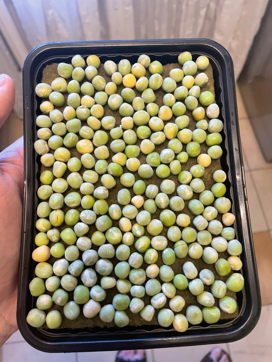 Пришли семена гороха, которые я заказывал на Вайлдберриз. На Авито нашел местного продавца боксов и агроваты. Решил сразу закупиться по 60 штук. Агровата 20мм, что обеспечит более редкий полив. Пробный засев у меня был на джутовых ковриках, толщиной 10мм. Пару раз не уследил и они пересохли, что привело к падению растений, но благо все нормализовалось) Боксы так же более удобнее. Борта у них на порядок ниже) Сделал новый засев по 5 боксов гороха и горчицы. Горчицу накрыл и поставил на балконе, а горох под пресс и в более прохладное место. Спустя пару дней семена не плохо пустили корни, думаю еще день два и буду выставлять на свет. С этой партией, я планирую пойти на местный рынок и предложить сотрудничество, посмотрим, что из этого выйдет)
