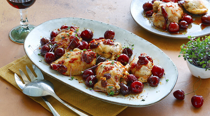 Бедрышки цыпленка с черешневым соусом: особенно красиво получается, если использовать черешню разных цветов