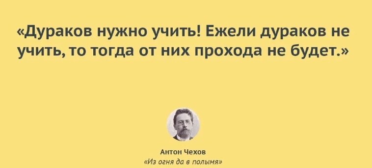 Как-то один из учеников решил выяснить моё отношение к высказыванию "Умный любит учиться, а дурак-учить" и не обидно ли мне за профессию, которую я выбрала. Как бы Вы ответили в этой ситуации (а отвечать нужно мгновенно, ведь всё происходит на уроке)? Мой ответ был такой: "Смотря к какой категории себя отнести, лично я хотела бы оказаться в первой", ученик продолжил "Но ведь Вы учите нас, значит Вы кто?", "Я - преподаватель, это моя профессия" -"Думаю, что Вам хочется просто поговорить, тогда скажите откуда эта фраза?" (надо отметить, что этот разговор состоялся на заре моей педдеятельности, в конце 90-х прошлого столетия, взят из моих дневников, об Интернете уже слышали, но массового применения ещё не было) - "Это народная пословица", рядом сидящая девушка поправила "Нет, это сказал Чехов", они пытались было спорить, но -"А вы оба правы: пословица указана в книге Даля "Пословицы русского народа" (19 век), изданного ещё до рождения А.П. Чехова, но она ему в своё время понравилась и