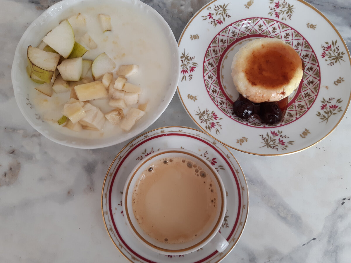 В июне продолжаем питаться экономно и вкусно на небольшую сумму. О запасах на начало месяца и расчете суммы на питание можно узнать ЗДЕСЬ Покупка продуктов 1 -Вкусвилл, Метро, Перекресток Покупка продуктов 2 -Смарт, рынок, WB, Озон, Вкусвилл Все рецепты можно найти в КАТАЛОГЕ РЕЦЕПТОВ Достала накануне сырники из заморозки. Замораживала остатки домашних сырников. Сварила на завтрак пшенную кашу молочную, ели ее с бананом и грушей. Плюс кофе и сырники с вишневым вареньем После завтрака уехала к парикмахеру. Теперь с ней не увидимся до конца августа: сначала она уезжает отдыхать, потом - я. Она едет с двумя детьми в Турцию на отдых. Билеты ловила долго, в итоге - 120 тыс только одни билеты на самолет. Плюс там добраться от Антальи до Аланьи. Сняли квартиру на месяц (иначе и лететь смысла нет), стоимость - 1500 евро + финальная уборка. Рассчитывает где-то на 140 тыс. И это без еды, развлечений, самой готовить. В принципе, за месяц на море и не такая уж большая стоимость на троих получаетс