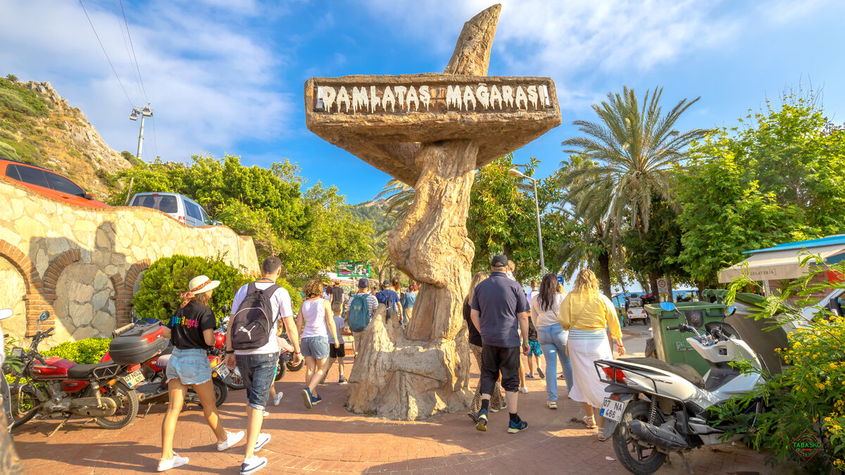 Пещера Дамлаташ - достопримечательность в Алании, на западной части полуострова, рядом с пляжем Клеопатра и крепостью Алания. Это природная достопримечательность, случайно открытая во время добычи камня для строительства крепости в 1948 году. Сталактиты и сталагмиты в пещере Дамлаташ датируются периодом между 15 и 10 вв. до н.э. Название пещеры происходит от двух турецких слов: damla — капля, taş — камень. Ее назвали так, потому что капли воды непрерывно капают на камни со сталактитов. Считается, что пребывание в пещере способствуют улучшению здоровья людей, страдающих астматическими заболеваниями. В пещере Дамлаташ постоянные показатели воздуха круглый год: температура 23,3 градуса по Цельсию, влажность 98% и атмосферное давление 760 мм рт.ст. Воздух в пещере насыщен большим количеством углекислого газа, из-за чего ее не рекомендуется посещать людям с сердечными заболеваниями. Сама пещера небольшая, ее осмотр займет 10-20 минут. По всему периметру внутри стоят деревянные скамейки, мож