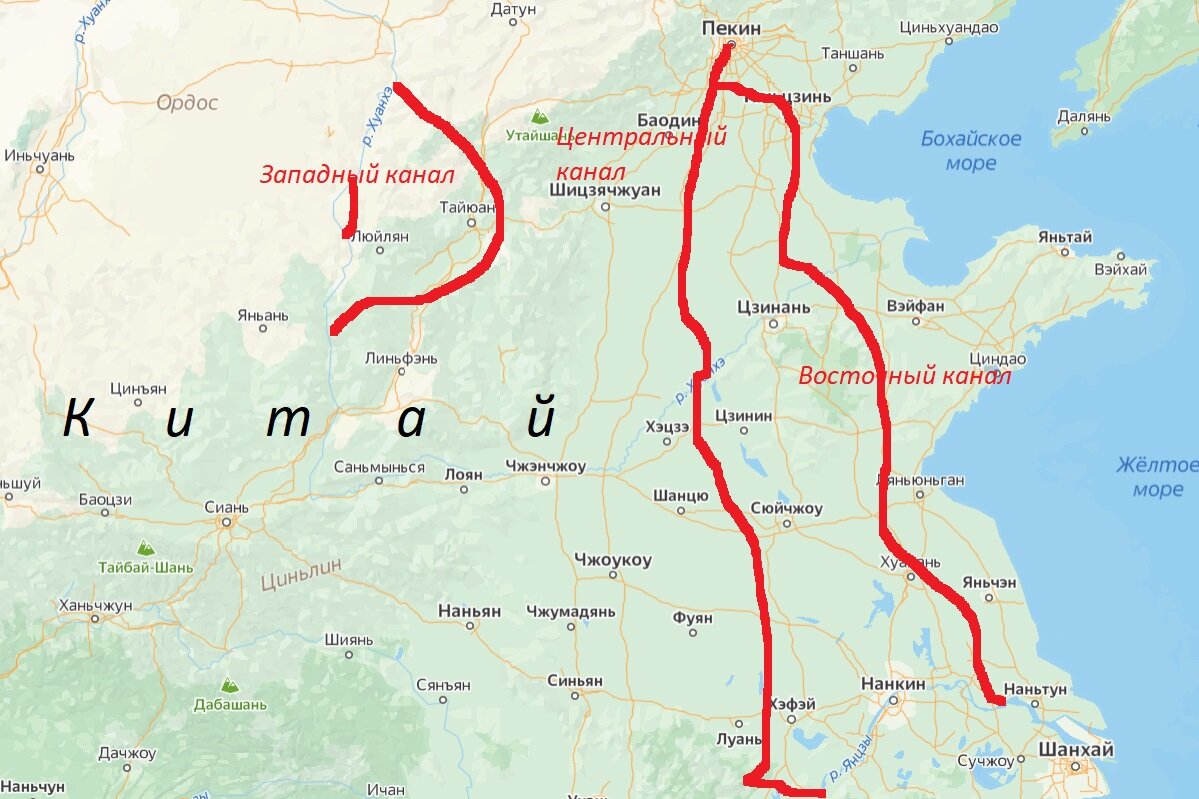 Проект Советского Союза, о повороте своих рек вспять не критиковал только ленивый. В конечном счете, от этой идеи решили отказаться. Но вот китайцы реализуют такую же безумную идею последние 30 лет. Дело в том, что СССР в середине прошлого века, собирались перераспределить часть стоков сибирских рек, чтобы помочь засушливым районам Средней Азии, в частности Казахстану. Как известно, Китаю катастрофически не хватает пресной и питьевой воды. Большая часть Китая располагается в засушливом регионе, а 30% его территорий вообще занято пустынями. Население Китая растет не по дням, а по секундам. Именно по этой причине, им не оставалось ничего другого как развернуть собственные реки вспять, иначе через 50 лет у китайцев не останется воды. Предполагается, что вода будет течь с юга на север, тем самым это спасет страну от дикой концентрации населения на востоке. Вот уже 20 лет Китай строит 3 канала, которые соединят 4 крупнейшие реки: На завершение этого масштабного проекта, Китаю потребуется е