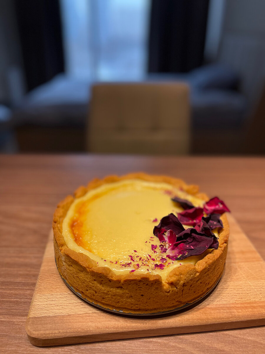 Быстрый десерт, который придется по душе и внешний вид не хуже ресторанного! Нам понадобиться: для теста Для начинки 1.Сметана 500гр Приготовим тесто: Для этого берем сливочное масло , натираем его на крупной терке. Добавляем к маслу сахар и яйцо. Все хорошенько перемешиваем. И добавляем муку с разрыхлителем (муку желательно просеять). Замешиваем тесто в шар , далее раскатывакм до нужного нам диаметра. Я использовала форму диаметром 16 см. Можно использовать и большего диаметра. Выкладываем наше тесто в форму. Подготовим начинку: Для этого нам необходимо просто смешать все ингредиенты до однородности . Начинка готова. Кстати, сметану можно использовать любой жирности , я беру 15%. Заливаем все это в нашу форму, ставим в духовку на 180 градусов, минут на 35-40, но все зависит от вашей духовки. Готовность можно проверить зубочисткой. И вот такой красивый пирок у нас получился. Украсить можно по желанию , я использовала сухие лепестки роз.