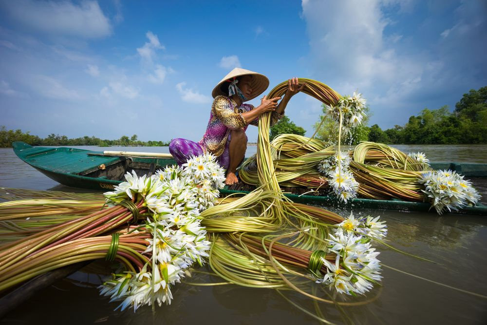 В каждой стране есть свои национальные особенности, фестивали и традиции, которые запоминаются туристам и местным жителям. Если говорить о Вьетнаме, то такой традицией можно считать очень сбор водяных лилий в дельте реки Меконг, который проходит тут буквально каждый год.Как и зачем вьетнамцы собирают лилии на реке Меконг И дело тут даже не в самих цветах, который выглядят очень красиво и необычно, сколько в девушках, которые их собирают. Десятки красавиц надевают на себя традиционные вьетнамские костюмы, берут традиционные лодки и отправляются на реку - собирать лилии.