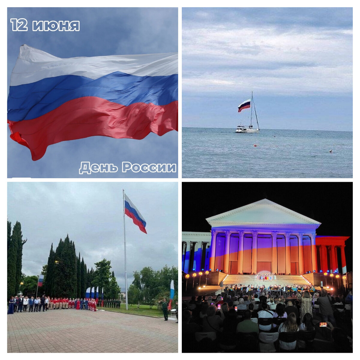 12 июня День России Во всех районах Сочи торжественно подняли флаги Российской Федерации. Во всех районах Сочи прошли мероприятия посвященные празднованию Дня России. Празднования закончилось светомузыкальным патриотическим представления на фасаде Зимнего театра Фото vk.com/sochvec vk.com/sochvec ok.ru/sochvec dzen.ru/sochvec