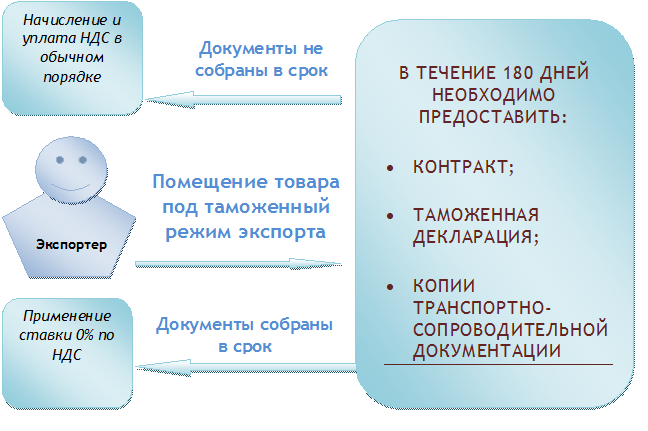Для того чтобы собрать все положенные документы и подтвердить ставку 0%, экспортеру дается 180 календарных дней со дня помещения товара под режим экспорта. Моментом определения налоговой базы в данном случае считается последний день квартала, в котором были полностью собраны все необходимые документы. Они подаются в налоговую одновременно с декларацией по НДС.