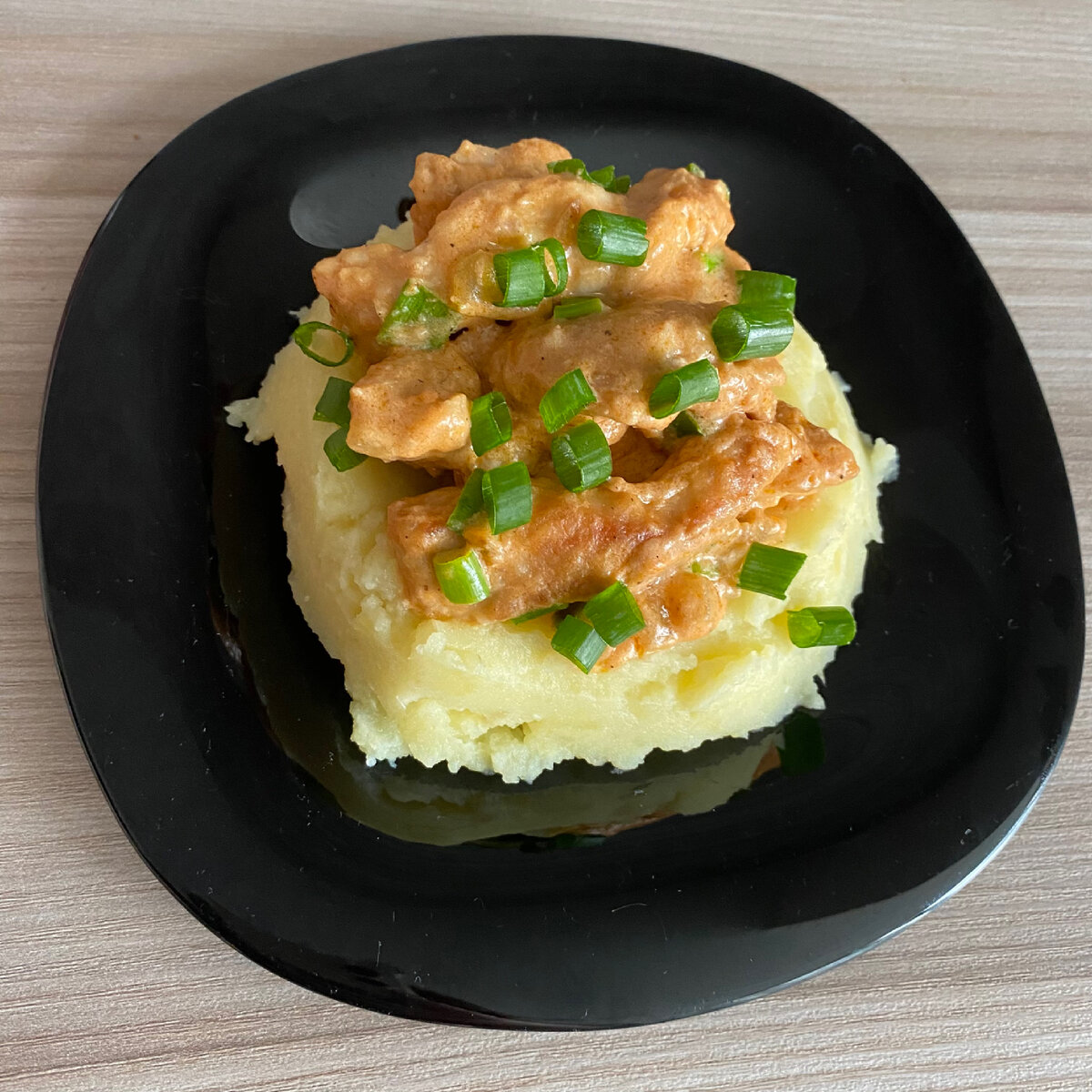 Ингредиенты : Приготовление: Шаг 1: Шаг 2: Шаг 3 : Шаг 4: Шаг 5: Готово! Идеально бефстроганов сочетается в подаче с картофельным пюре, попробуйте. Приятного аппетита!
