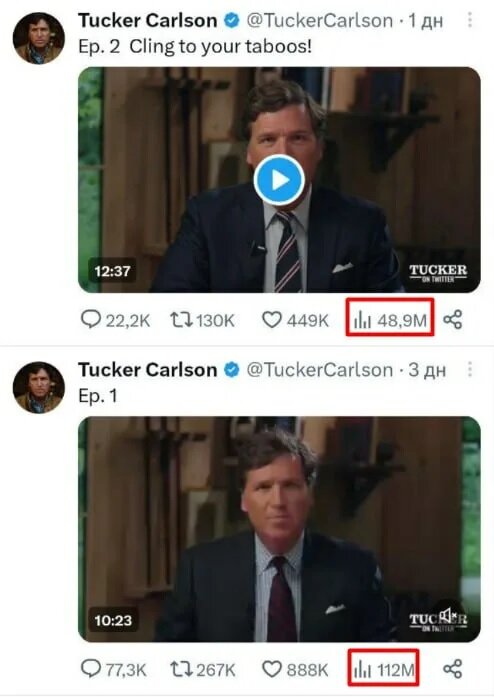 Я тут недавно писал про то, как Илону Маску дали 72 часа, чтобы он заблокировал там у себя в Твиттере аккаунт Такера Карлсона. И как он это дело вполне ожидаемо проигнорил. И ничего не случилось. Так вот, суета то совершенно не на ровном месте. Кто не в курсе, опишу чуть поподробнее. Будучи изгнан с Фокс Ньюс за слишком уж откровенные высказывания про семейство Байденов, Карлсон завёл канал «Такер в Твиттере» ("Tucker on Twitter"). Илон Маск лично приветствовал скандального политического обозревателя. Первые же два ролика набрали под 170 миллионов просмотров. Посвящены они были окраинскому кокаиниссимусу и событиям на Каховской ГЭС. Такер по полочкам разобрал, как свидомые разрушили станцию, зачем и почему им это было необходимо. Вот тогда то представители администрации президента страны 404 и направили ему то самое "предупреждение" о блокировке аккаунта Такера в 72 часа. Ну, вроде как, все пошумели и разошлись, но небывалый успех нового канала привлёк бывших работодателей Карлсона. На