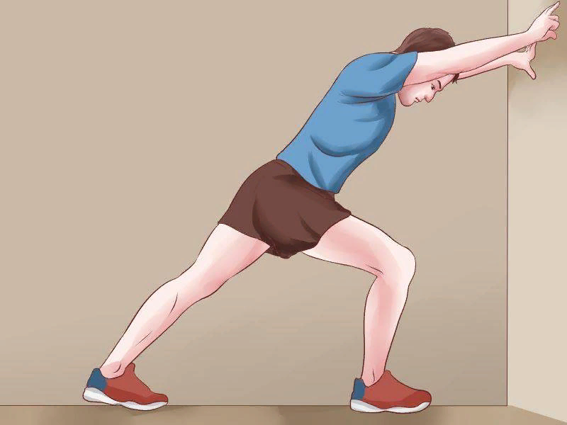 Упражнение исполняется стоя у стены и исполняется достаточно просто: