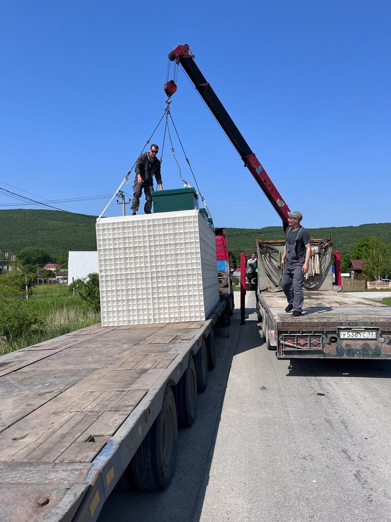 Первый этап: - Выгрузка и установка блоков на бетонную подушку, приготовленную заказчиком! Второй этап: