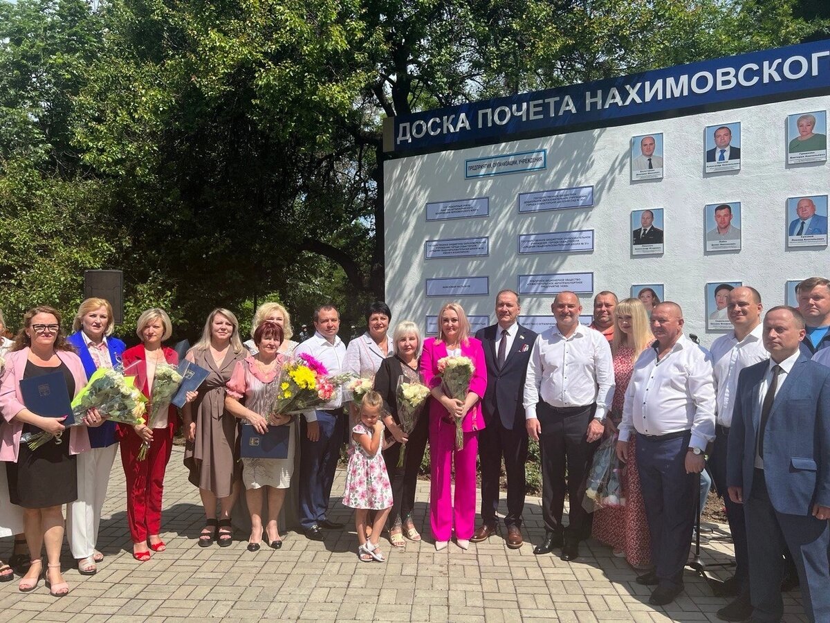 Торжественное открытие Доски почета Нахимовского муниципального округа состоялось в преддверии Дня России и Дня основания Севастополя. Доску почета открыли депутаты Государственной Думы РФ Татьяна Лобач и Дмитрий Белик («Единая Россия»), глава Совета Нахимовского МО Михаил Лазарев и директор Департамента внутренней политики Севастополя Сергей Бездольный. На мероприятии также присутствовали заместитель главы Совета Нахимовского МО Сергей Михальчук, заместитель главы местной администрации Валентина Колесникова, сотрудники администрации, депутатский корпус и жители Нахимовского района. За весомый вклад в развитие и процветание Нахимовского МО были отмечены 23 представителя различных профессий и восемь трудовых коллективов. Трое севастопольцев получили звание Почетного гражданина Нахимовского района. Праздничное настроение жителям и гостям района подарили творческие коллективы культурного комплекса «Корабел». Татьяна Лобач и Дмитрий Белик поздравили нахимовцев с наступающими праздниками