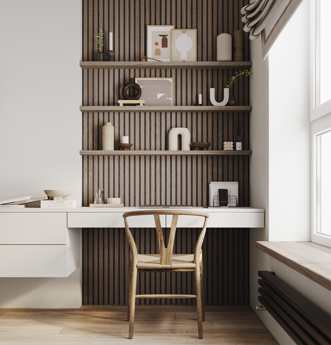 Одной из ключевых областей применения декоративных акустических панелей является создание разделения пространств. В открытых помещениях, где может быть необходимо создать зоны для различных видов деятельности или приватности. Декоративные акустические панели могут быть использованы в качестве преграды или перегородки, чтобы визуально разделить пространство, а также снизить перекрывающиеся звуки между зонами. Это особенно полезно в офисах, где создание тихих и фокусированных рабочих зон может повысить производительность и концентрацию сотрудников.
