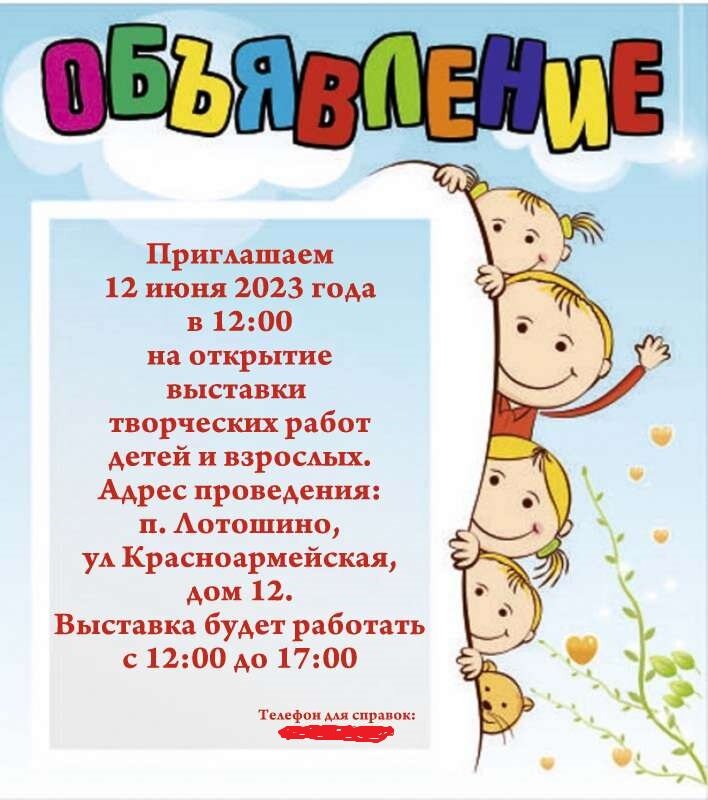 Рубрика "Праздники с детьми и для детей" Никак мне спокойно не живётся! Привыкла десять лет на даче организовывать всякие интересные мероприятия. Привыкла, что у нас на участке постоянная движуха, постоянно дети что-то мастерят или играют в какие-то забавные игры. Что-то им надо срочно узнать, или просят помочь в решении своих детских проблем. Очень мне этого не хватает! Вот и решила пойти проторенным путём - организовать выставку детских работ. Но как это водится, в процессе подготовки приходят всё новые и новые идеи. Рассказываю про нашу выставку. Вот такое приглашения получили многие наши знакомые. В 12:00 выставка открылась. Тридцать девять работ от девяти участников были представлены зрителям. Участвовали семь детей и двое взрослых. После открытия выставки её участница, Татьяна Борисовна Щеглова, рассказала о том, как начала вышивать, и о встрече с известной вышивальщицей, хозяйкой сети багетных салонов, блогером - Татьяной Лозовской. На встрече с ней она была буквально накануне