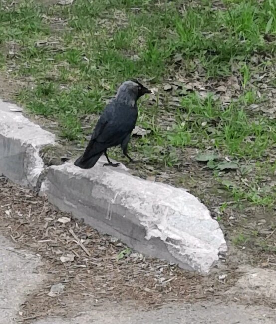 Недавно писала про слетков, и вот пришлось самой поучаствовать в спасении галчонка. На гнездо галок напала какая-то хищная птица. Это был не ястреб, не орел. Так и не определила, кто именно. Галки отбивались коллективно, героически! И отбились! Очень жаль, что не успела снять это на видео. Пока доставала телефон, включала, нечаянно стала участником событий. Испуганный галчонок улетел от хищника и на скорости врезался в стену здания. Упал в кусты и не вставал. Думала, что погиб. По предписаниям вмешиваться не надо бы. Но пройти мимо как-то не по-человечески! Мама-галка летала над кустом, что-то призывно кричала и пугала своим агрессивным видом прохожих. Они-то не знали, что в кустах пернатый малыш, и про птицу думали плохо! 😀 Ну что было делать! Достала бедолагу. Он немного полежал в руках и оклемался!!!! Пришлось идти и сажать его на нижнюю ветку родного дерева. Вернуть детёныша в семью получилось. Но благодарности от его родителей не дождалась! 😉🤨 Не нападали, но смотрели не по-до
