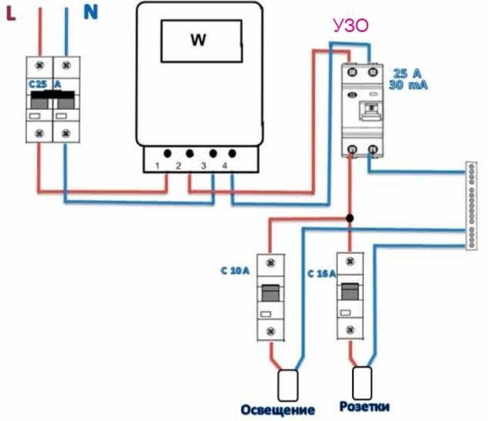 Настоящее заземление это специально проложенный прямо из подвала толстый провод, который заводится на отдельную от нуля шину в щитке. Теперь, от заземления, перейдём к УЗО. Устройство защитного отключения срабатывает тогда, когда в проводе, который к нему подключен, по нулю возвращается меньш