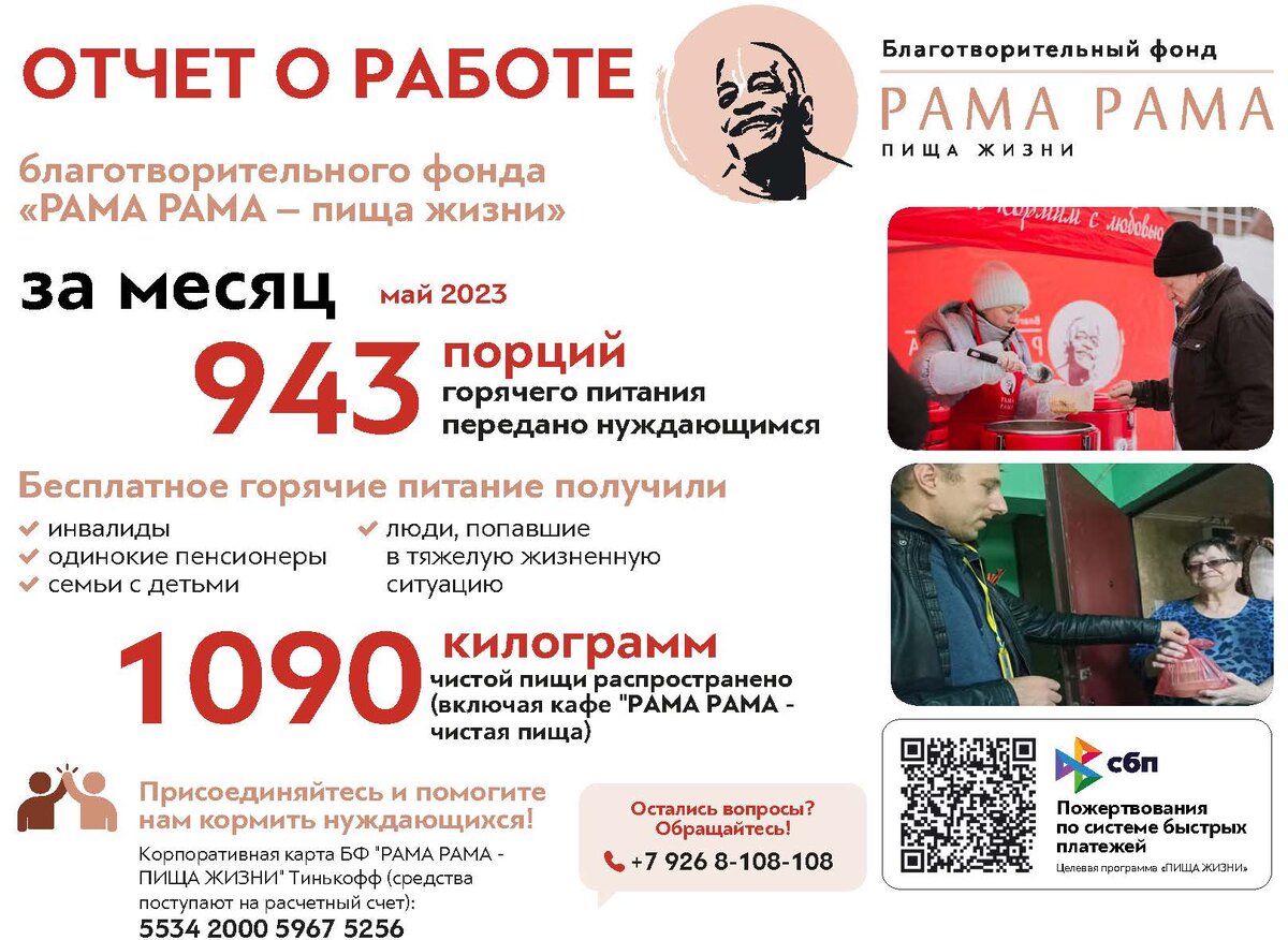 Дорогие друзья и доброжелатели! Спешим поделиться результатами нашей работы за май 2023 года! За май 2023 было сделано: ✔проведено 5 акций по уличной раздаче горячего питания