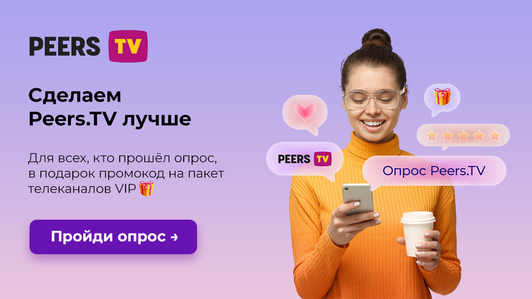 Мы работаем ради вас, поэтому нам очень важно знать ваше мнение и получать обратную связь о Peers.TV. Пожалуйста, уделите пару минут и ответьте на несколько вопросов, чтобы наш сервис стал ещё лучше — ОПРОС Каждый, кто пройдет опрос, получит промокод на пакет «VIP» с лучшими телеканалами! #промокод #промокоды #опрос