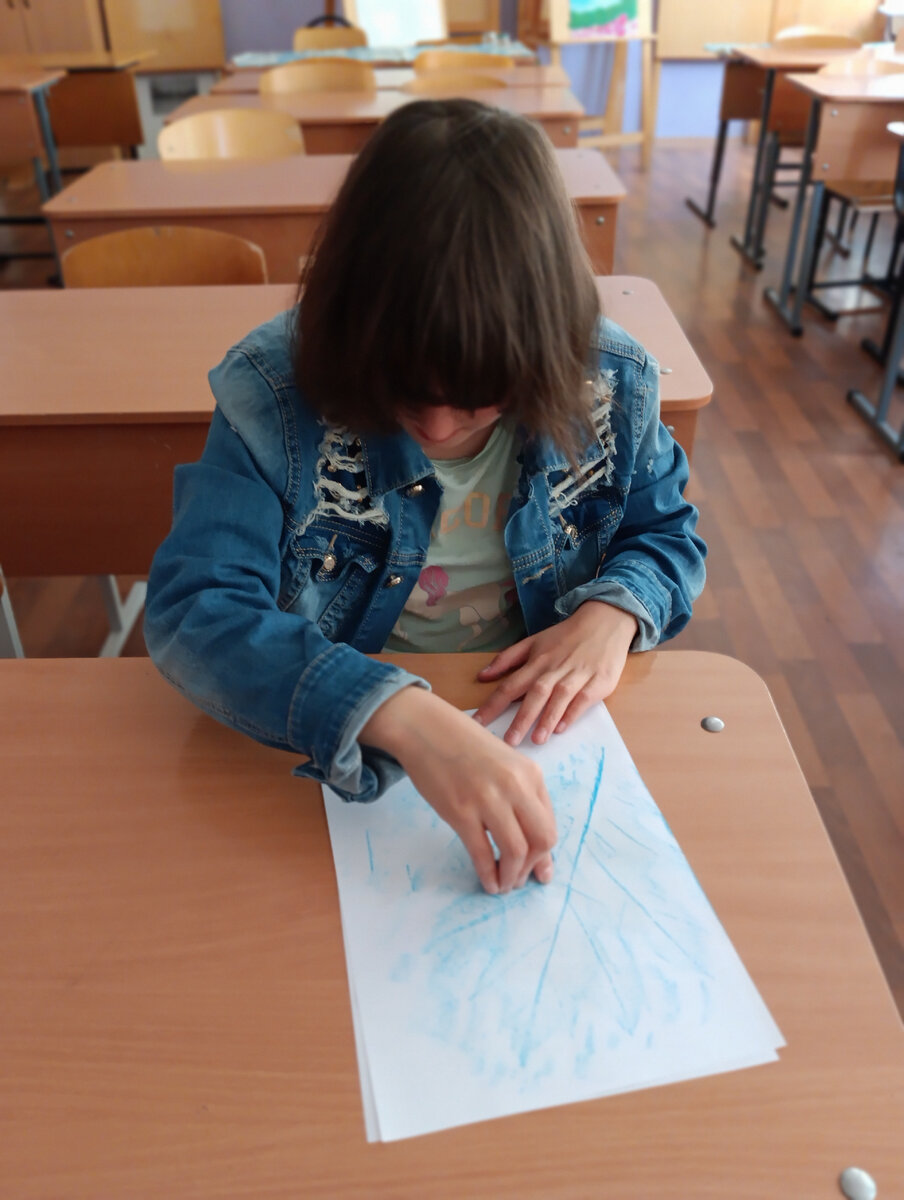Напомню-я преподаватель ИЗО /черчения в массовой школе. У меня двое детей-кповная и опекаемая. Опекаемого 10 лет, ЛУО, незрячая. Ей 10 лет, 10 месяцев, как живёт с нами дома. Из-за травмы изъятия и сиротства, из-за 8 лет проведённых в разных ДДИ-колоссальное отставание. Т. е. эмоциональный возраст около 3 лет. Летом беру на работу. Как с маленькой:лист кладём так, кисть отжимаем так, краску размачиваем так. Восковой мелок и сушеный лист: Рисуем полосочки-веточки, точечки-листики, плоскую землю-горизонтали и волны. Сразу вылезает много вопросов-где верхний левый угол, правый нижний угол и т. д. Почему веточки, зёрнышки и листочки? П. ч. это может незрячий ребенок потрогать и в движениях повторить. Разные материалы, разные движения. Обогощение смыслового, двигательного и осязательного опыта. Новые нейронные межполушарные связи. То что нужно любому ребёнку для развития. А взрослому, для профилактики, например Альцгеймера.