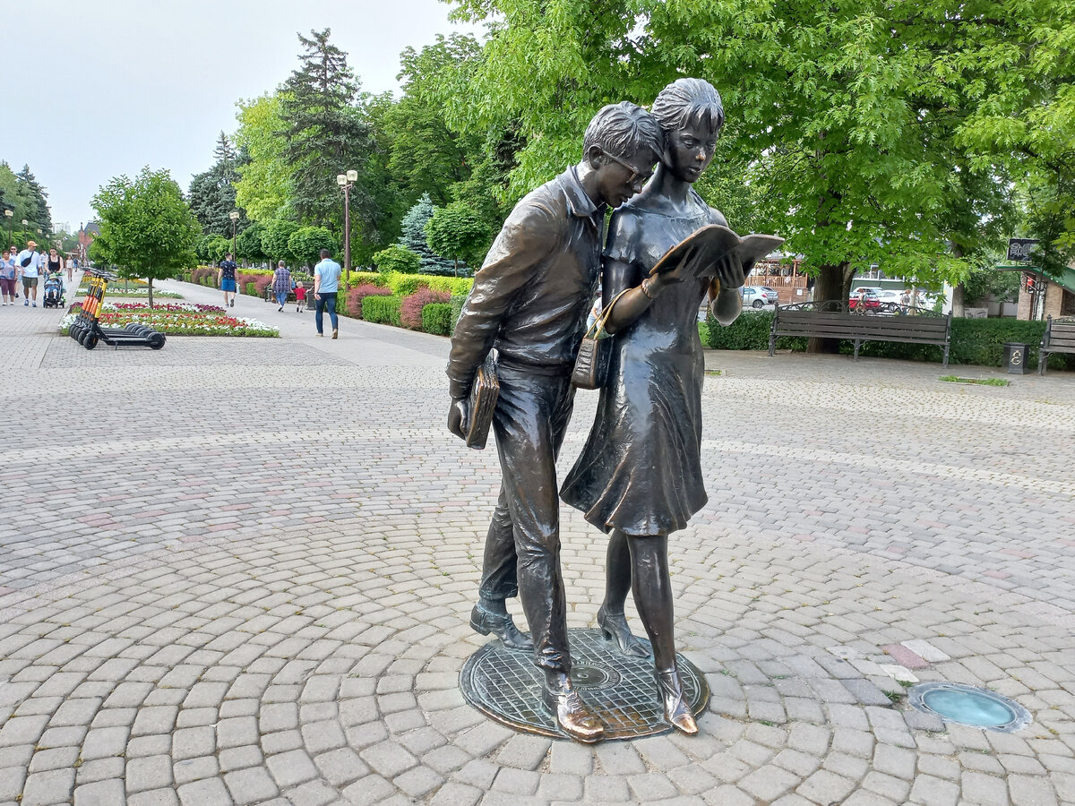 Владелец кинотеатра "Кристалл" в 2010 году стал инициатором установки этой скульптурной группы в память о советском кинематографе.