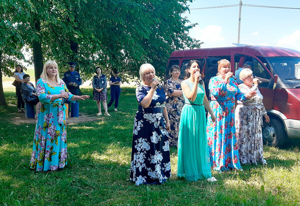 Жарким летним днем в составе агитпоезда специалисты заинтересованных служб района отправились на встречу с сельским населением. Маршрут пролегал по населенным пунктам, расположенным вблизи городской черты. Деревни Шупени, Пригани 2 и Ольшаники радушно приняли гостей из райцентра, которые прибыли, чтобы поговорить о мерах безопасности в летнее время и, несомненно, порадовать хорошей песней. Такие встречи, как правило, проходят в тёплой и дружеской атмосфере, ведь сельчане их ждут. Прямо на автобусной остановке в Приганях уже собрались местные жители вместе с председателем Комсеничского сельского Совета Николаем Редким. Всех прибывших на встречу представила Елена Чудакова, главный специалист отдела идеологической работы и по делам молодежи райисполкома. Затем слово предоставлялось начальнику районного отдела по чрезвычайным ситуациям Сергею Щитникову. Он напомнил основные меры пожарной безопасности в жаркое время года, подчеркивая важность надлежащего контроля за детьми, прибывшими к ба