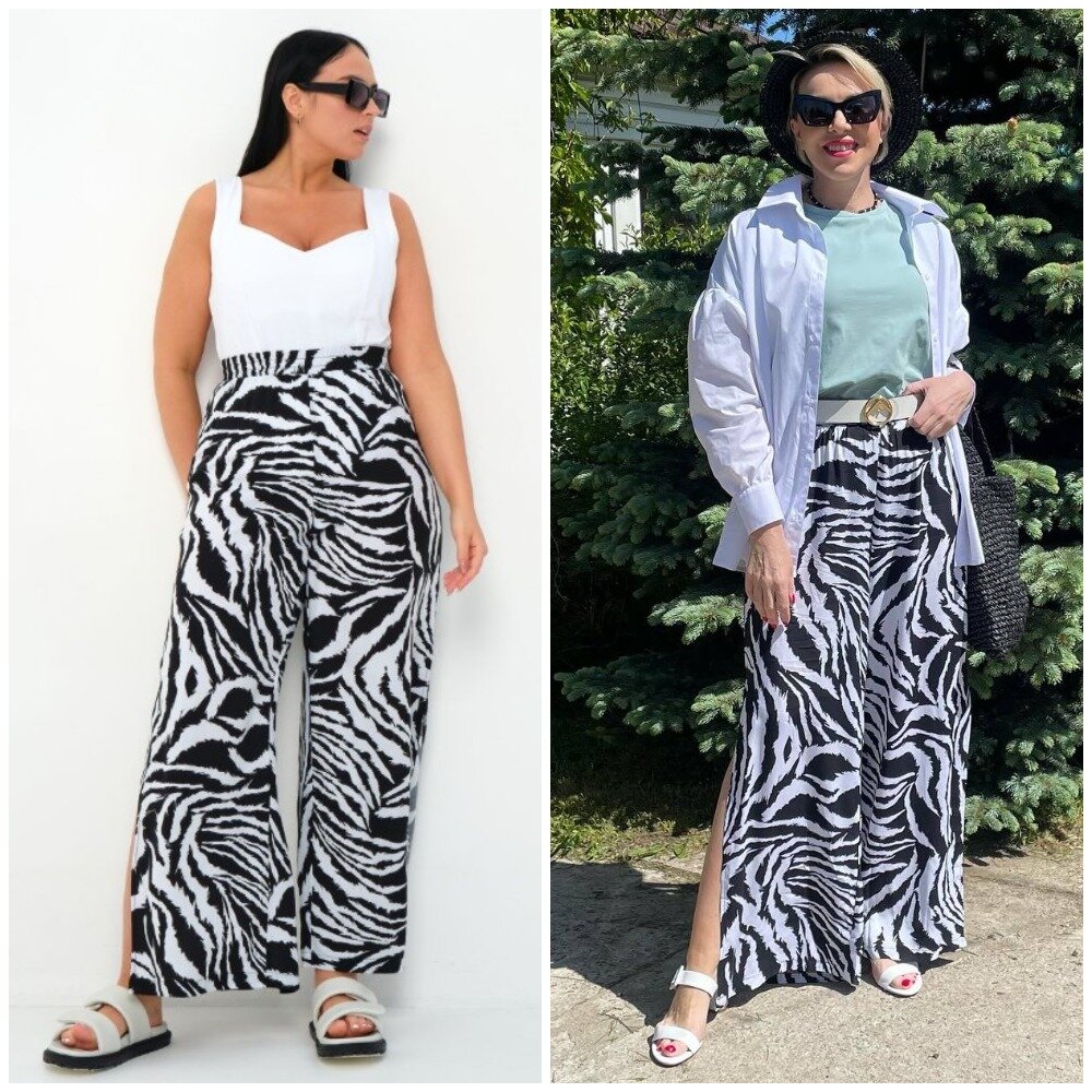 Здравствуйте, дорогие читатели! Меня зовут Ирина, я - стилист, и на этом канале показываю одежду и аксессуары с Wildberries такими, как они есть, то есть, из серии "ожидание/реальность". Мои параметры: рост 169 см, вес 62 кг, 93-74-100 ✅Основной канал: Стильно - не значит дорого! Ставьте лайк в поддержку канала, и давайте смотреть на мою сегодняшнюю покупку. Если у вас в городе летом такая погода, что жарко даже в самых тонких и легких брюках, представляю вам идеальную модель! Это брюки с высокими разрезами по бокам - интересное модное решение. Они широкие, свободные, очень легкие. Такие брюки можно взять на отдых и пойти в них на пляж. Отличная альтернатива юбкам на лето. Актуально и для тех, кому в жару натирает внутренняя поверхность бедра. Помимо этих преимуществ, брюки с очень красивым актуальным принтом в базовых цветах, что делает их легко-комбинируемыми. Брюки представлены с 50 до 68 размера, я обычно ношу 46-48, но самый маленький размер на мои параметры сел неплохо. Видео-обз
