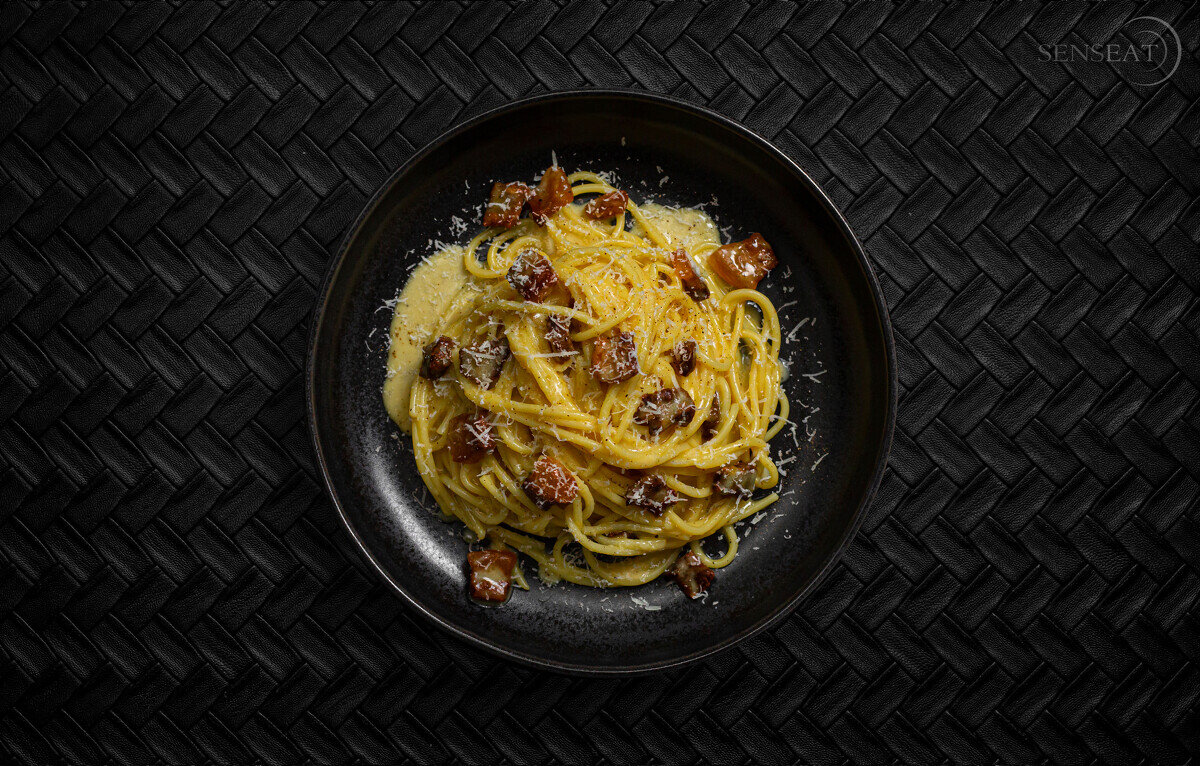 Если вы уже проходили базовый курс нашей школы "Основы Французской Кулинарии", то уже сталкивались с таким понятием, как эмульсия (существительное) и эмульгирование (глагол). Вот в этом и есть первый секрет «Карбонары», поскольку, напоминающий сливки соус - как раз и есть эмульсия из смеси вытопленного жира и воды от варки пасты. Эмульсия - это всегда комбинация жир + вода, которые при активном смешивании дают шёлковую, мерцающую текстуру. То есть уже, без всяких яиц, можно получить непрозрачный вкусный соус из двух ингредиентов, который будет базой (выделить жирным «базой») для доведения соуса до уникального вкуса «Карбонары».