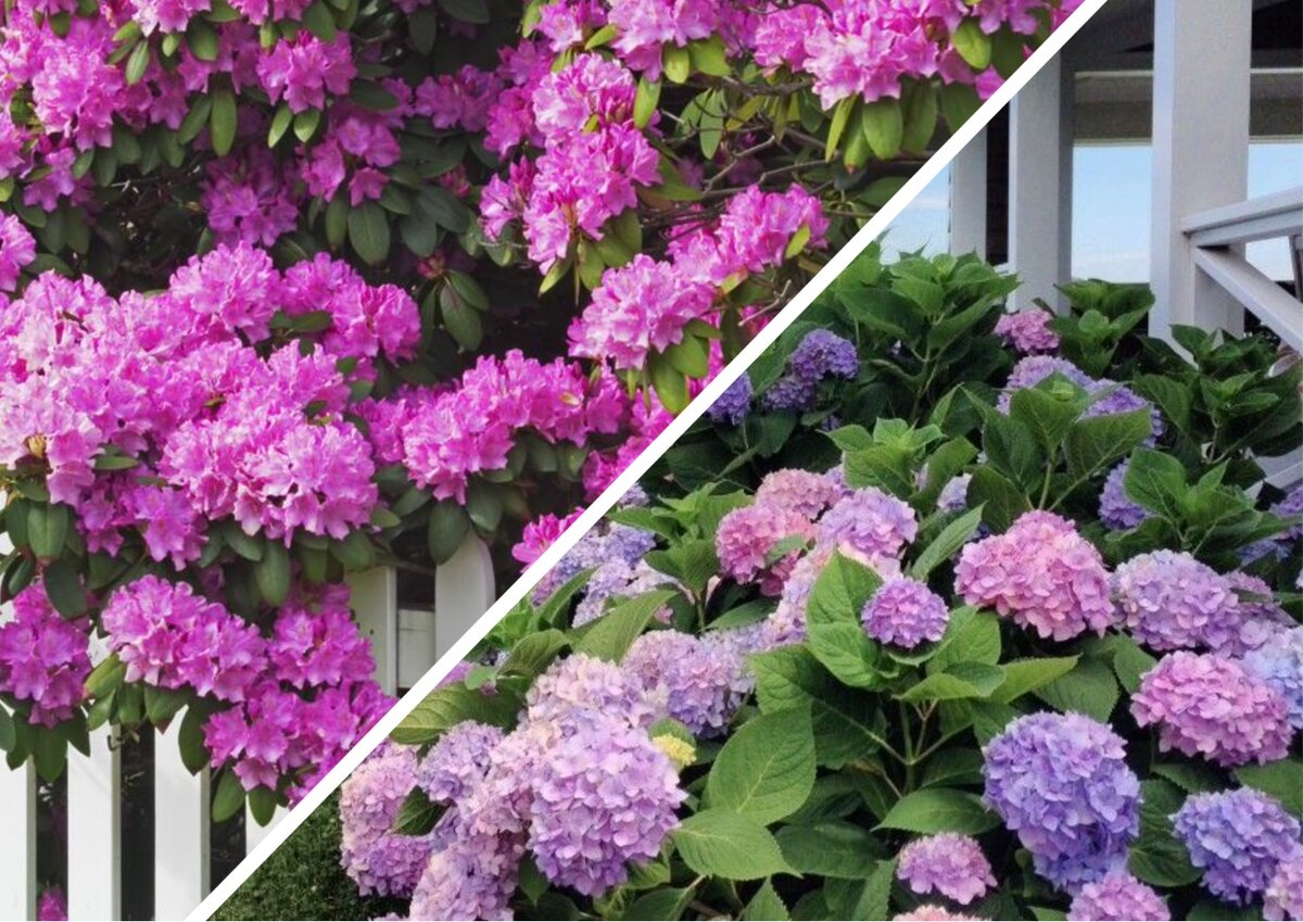 Когда выбирают между рододендроном и гортензией, чаще всего высаживают оба кустарника. Потому что у каждого растения свои преимущества и главное – разное время цветения.