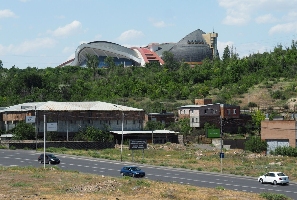 Как ни странно, к огромному зданию спортивно-концертного комплекса, занимающему вместе с окрестной территорией несколько гектаров, ведет по сути одна нормальная автомобильная дорога и одна парадная лестница от остановки общественного транспорта. В остальных случаях дорогу к комплексу приходится прокладывать по каким-то заросшим козьим тропкам, а то и вовсе идти по пересеченной местности. Все дело в несколько изолированном расположении сооружения. Возвышающийся над ущельем реки Раздан холм Цицернакаберд 20 годами ранее был выбран местом для строительства одноименного мемориального комплекса, посвященного жертвам геноцида армян. И на этом видном и в прямом, и в переносном смыслах месте было решено возвести крупнейший в Республике спортивно-концертный комплекс.