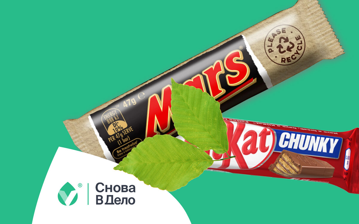Экопроект запущен в сети магазинов Tesco в Великобритании. Новая упаковка защищает батончик и поддается переработке.