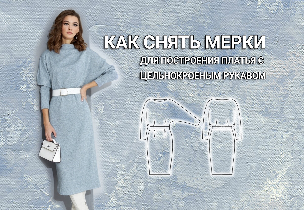 Платья с цельнокроеным рукавом обычно шьют из трикотажных полотен. В них отсутствуют вытачки и застежка, а широкий рукав и эластичная ткань придают свободу движениям. Выкройку такого платья можно выполнить сразу на ткани. Понадобится всего 10 мерок. Подходящие ткани для такого платья – это мягкие, растяжимые, средней плотности полотно трикотажной группы (джерси, футер, кулирка, вязаное полотно и др.). Как снять мерки для построения платья с цельнокроеным рукавом – далее в этой статье. 1. ОГ – обхват груди Сантиметровая лента проходит горизонтально, параллельно полу через выступающие точки груди. 2. ОТ – обхват талии Лента проходит горизонтально вокруг туловища на уровне линии талии (обычно самый узкий участок). 3. ОТ – обхват бедер Окружность бедер снимают по выпуклым точкам ягодиц с учетом самых широких мест по бокам 4. ШСп – ширина спины Мерка ширины спины в данном случае снимается между линиями плеч у основания шеи. 5. ДТС – длина до талии по спинке Мерка снимается от 7-го шейного п