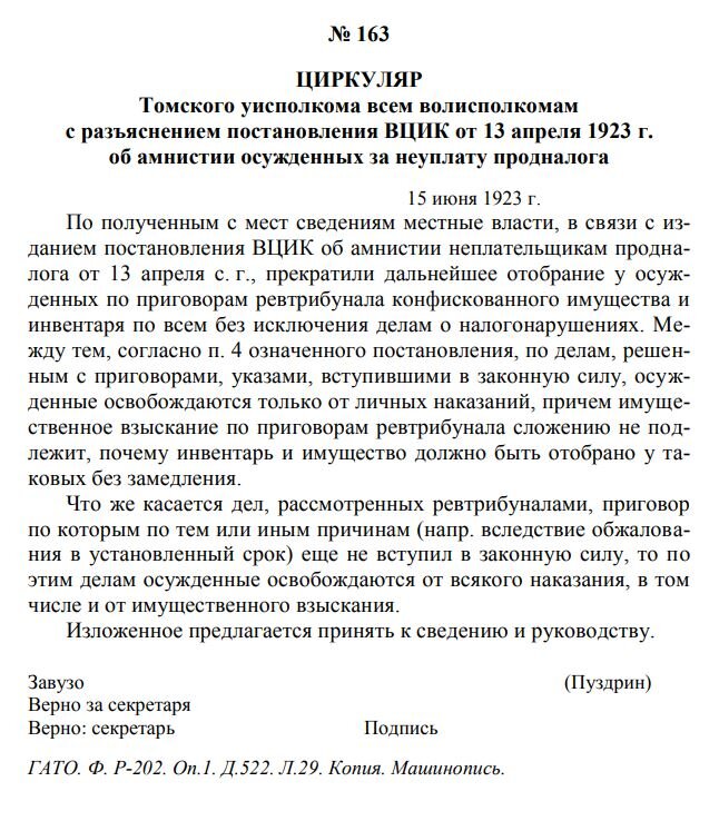 1923. Июнь, 15 Томский уисполком разослал циркуляр с разъяснением постановления ВЦИК от 13 апреля 1923 года об амнистии осужденных за неуплату продналога. [ГАТО.Ф.Р.-202.Оп.1.Д.522.Л.29.; 1921-1924. Народ и Власть. С.245.] 1937. Июнь, 15 Инструкция НКВД СССР о проведении (в соответствии с решением Политбюро от 23 мая) операции по выселению из Москвы, Ленинграда, Киева, Ростова, Таганрога, Сочи лиц, вычищенных из ВКП(б), и членов семей репрессированных. Начало операции – 25 июня. [«30 октября» (2007. № 74. С. 1, 3–7).] 1937. Июнь, 15 Расстрелян в Новосибирске Семен Соломонович Цетлин (Цейтлин), член РСДРП с 1904 года. Родился в 1888 в Витебске в семье Соломона Цетлина, где все три его сына: Семен, Михаил и Эмиль стали профессиональными революционерами и при советской власти все трое были неоднократно репрессированы. Семен закончил юридический факультет МГУ, до 1917 принимал активное участие в революционной деятельности, был идеологическим противником большевиков. На 1921 жил в Москве и