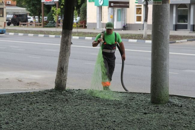 В Туле на Красноармейском проспекте начали обновлять газоны. Траву сеют методом гидропосева с помощью гидросеялки. Такая же технология применялась на пр. Ленина. Всего планируется засеять 14,5 тысяч кв. м газона. После посадки травы газоны будут поливать раз в два дня. Первый всходы должны появиться на 5-7 сутки после гидропосева. Также планируется обновить газоны на ул. Октябрьской, Мосина, Советской. Всего в этом году в Тула в порядок приведут более 36 тысяч кв. м газонов. Параллельно с посевом травы на пр. Ленина и на Красноармейском пр. производится замена бордюров там, где это необходимо.