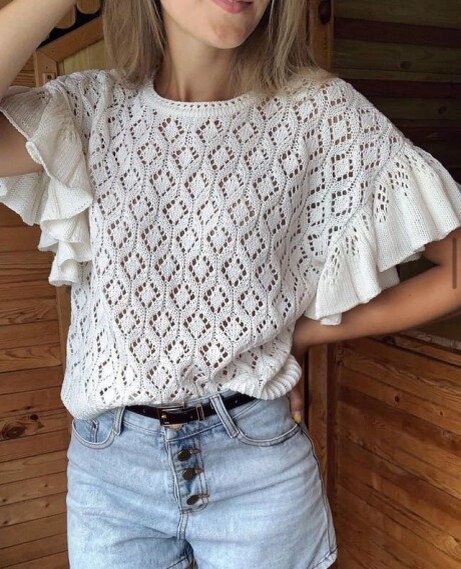 Топ связан из пряжи Пехорка Детский хлопок, расход чуть меньше трех мотков.