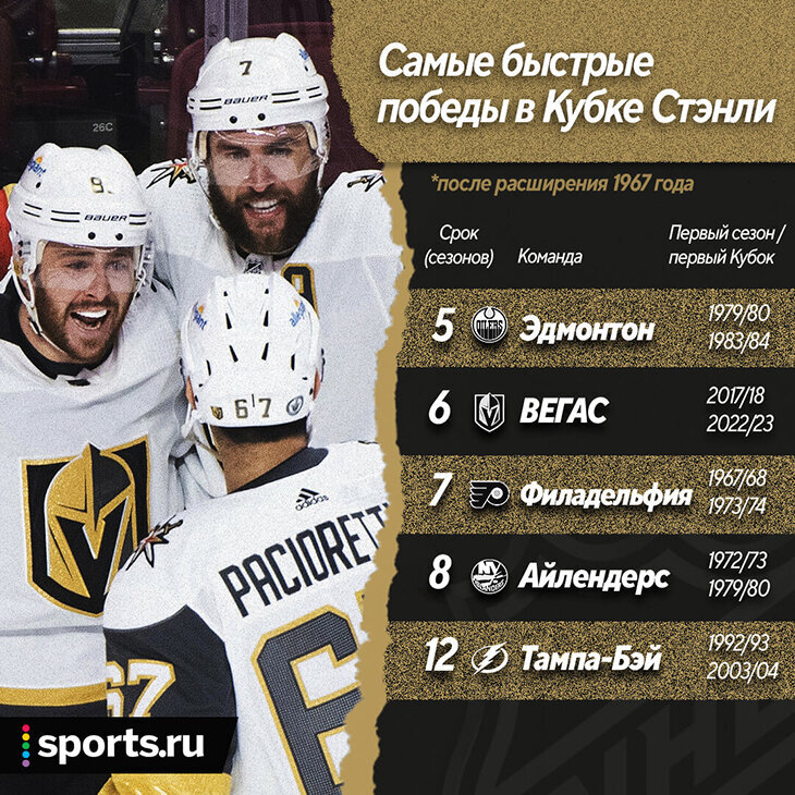 Второе обещание Фоли тоже в итоге выполнил – «Вегас» взял Кубок Стэнли ровно на шестой сезон в лиге. Если брать историю НХЛ с периода первого расширения в 1967 году, то быстрее был только «Эдмонтон».