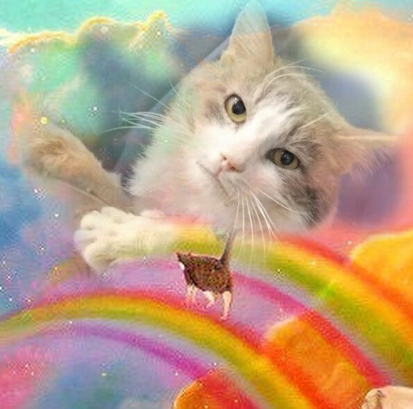 Беги по радуге, малыш, резвись, шали, играй, над облаками, выше крыш - такой кошачий рай. Беги по радуге, беги и про болезнь забудь